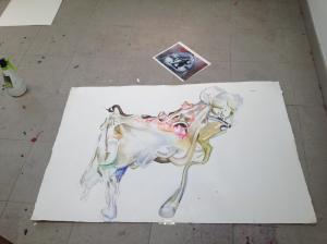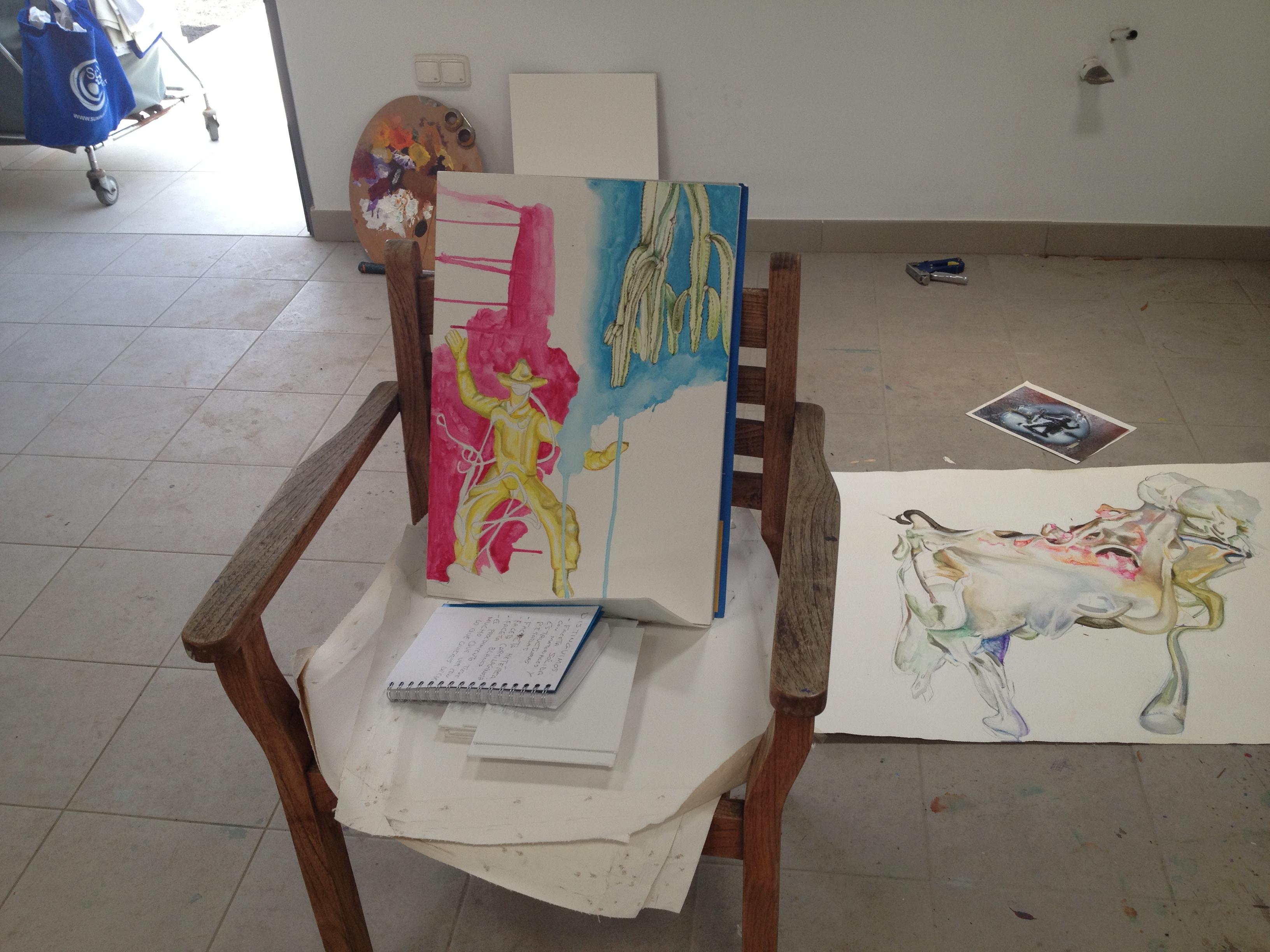 Gorka está en la residencia. Os presentamos unas fotos de las obras en las que está trabajando. Una creación ni figurativa, ni abstracta. En su origen se trata de pequeñas formas de silicona escaneadas a gran resolución, que crean referentes, de los que Gorka crea imágenes pictóricas de esencia abstracta pero de construcción casi hiper-realista.Un placer haber tenido oportunidad de charlar con él.