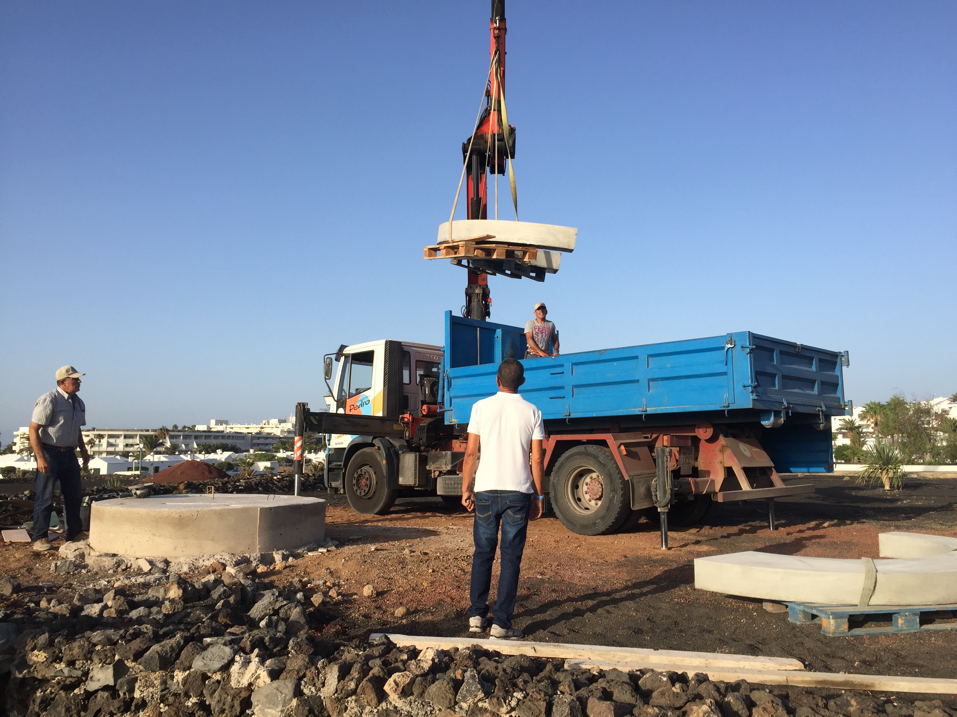 Aitor Etxeberria, nuestra mano derecha en la residencia, se está introduciendo en un nuevo mundo, el de la escultura, tras años dedicado a la pintura. Aqui lo tenemos ejerciendo de diseñador técnico, jefe de obra, y cómo no, artista, con su nueva escultura de fran formato «Deconstrucción de piedra de molino»
