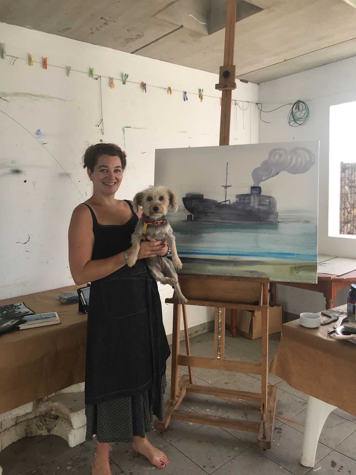 Marie Detrée sabe mucho de mares, islas y océanos… Mar Rojo, Mar de China, Mar de Coral, Estrecho de Gibraltar, Mar del Norte, …. Es pintora oficial de la Marina Francesa (POM) desde 2010 y se ha recorrido medio mundo en naves de la Marina Francesa. Pero esta vez, se ha quedado en tierra firme con nosotros y nos ha regalado su joie de vivre, y nos ha contado las historias de los barcos que ha plasmado en sus cuadros.