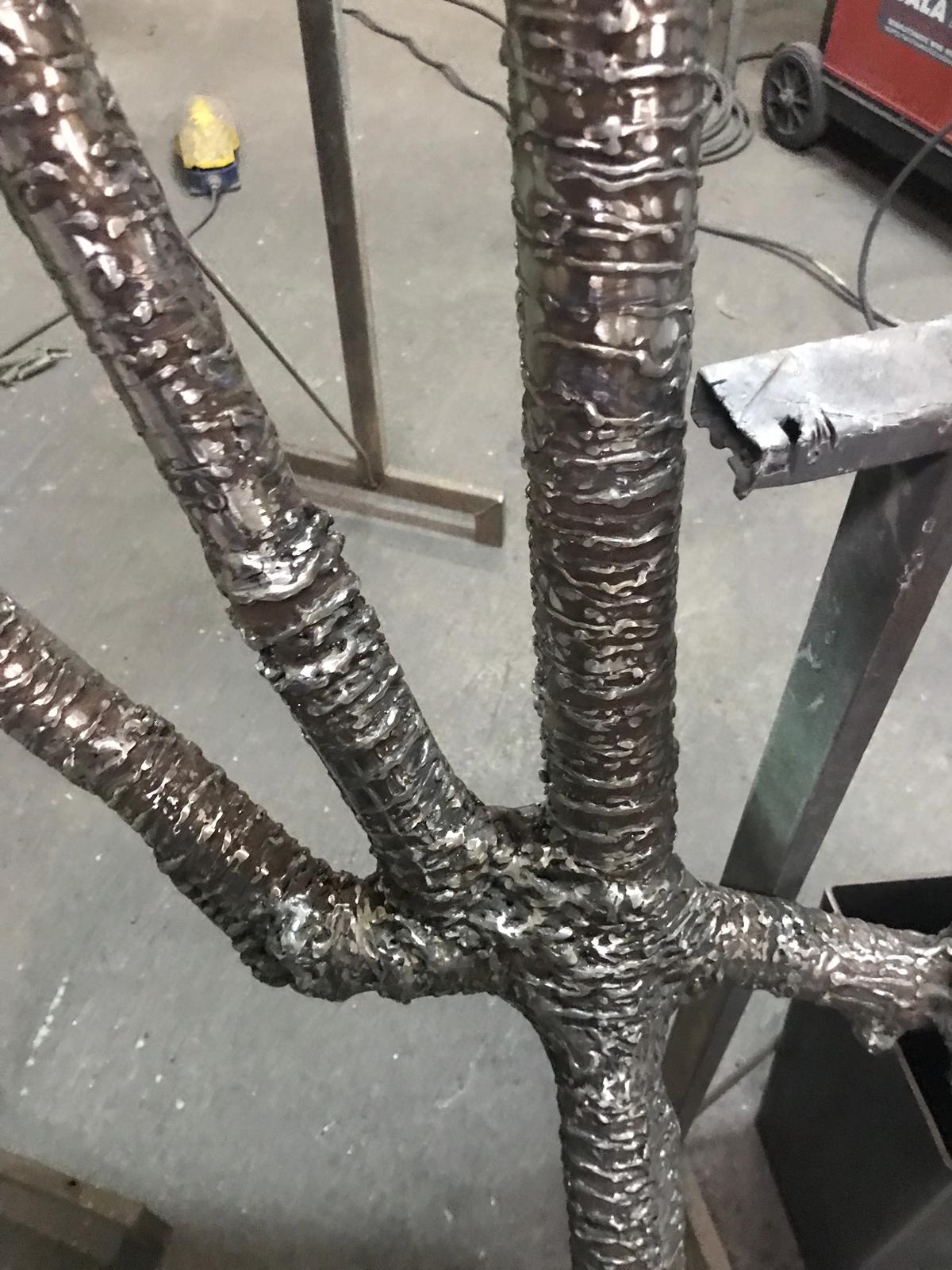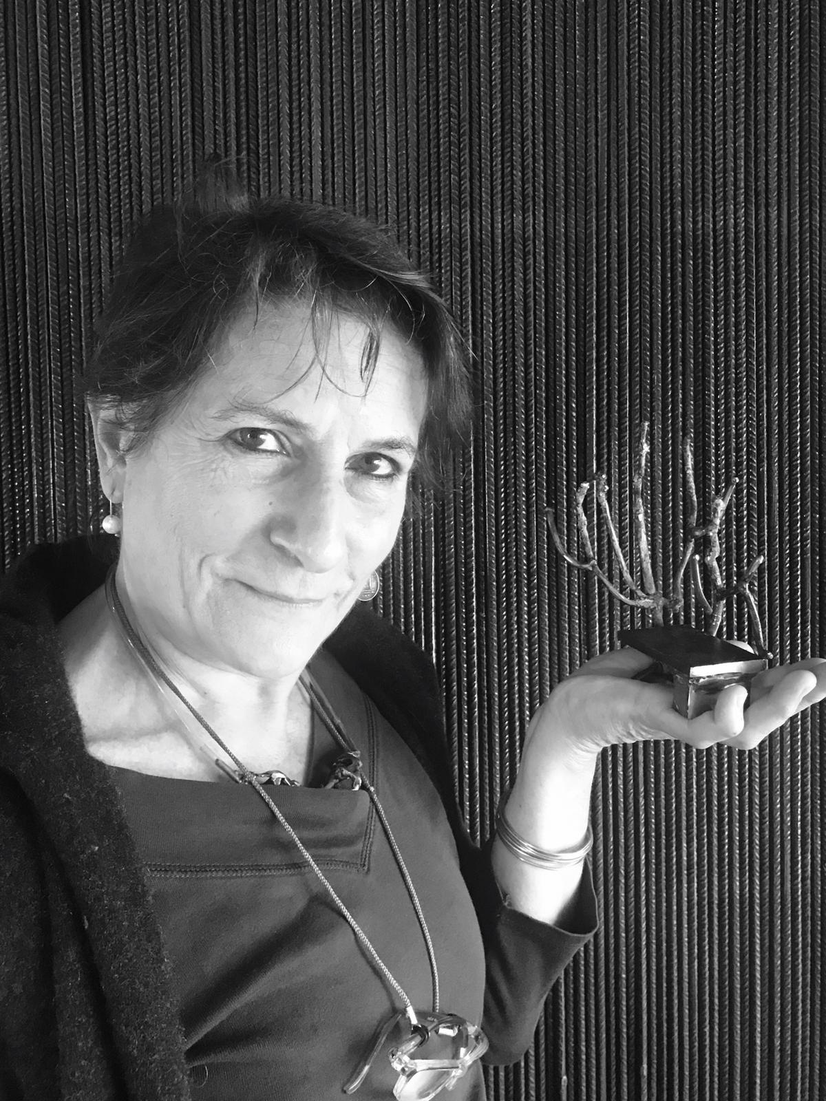 Piedra volcánica y acero inoxidable convertidos en una obra de arte. Luisa ha trabajado muy duro transformando el acero hasta convertirlo en las ramas de un arbol torcido por el viento en su obra «Fermarsi nel vento» («Detenerse en el viento»), una obra totalmente inspirada en el paisaje de Lanzarote.