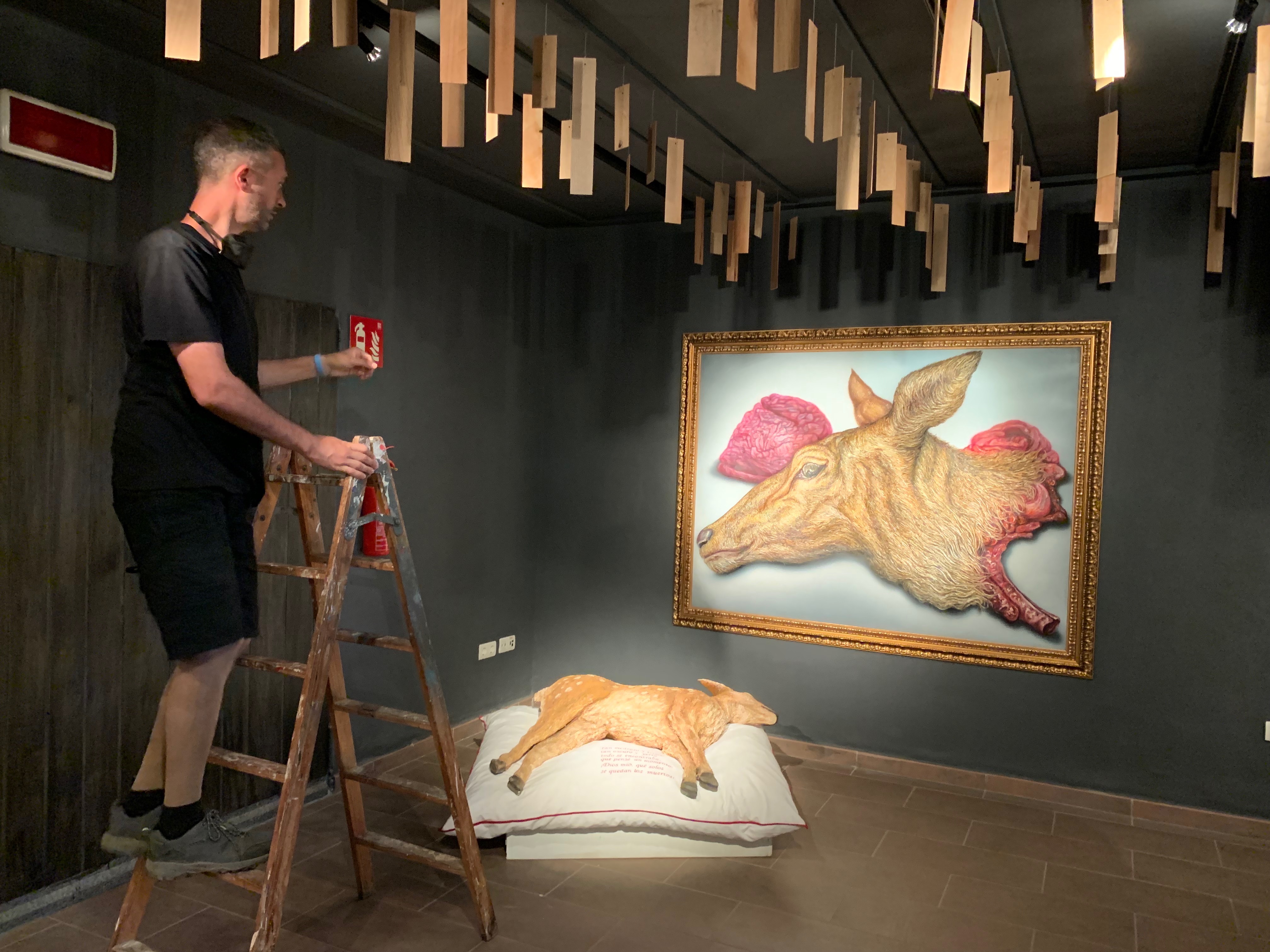 La obra expuesta forma parte de la serie Dehesa, inspirada en la dehesa ibérica y compuesta por 15 pinturas de diferentes tamaños y técnicas (óleo y carboncillo) así como una instalación hecha en poliester, escayola y óleo que acompaña a una de las pinturas.