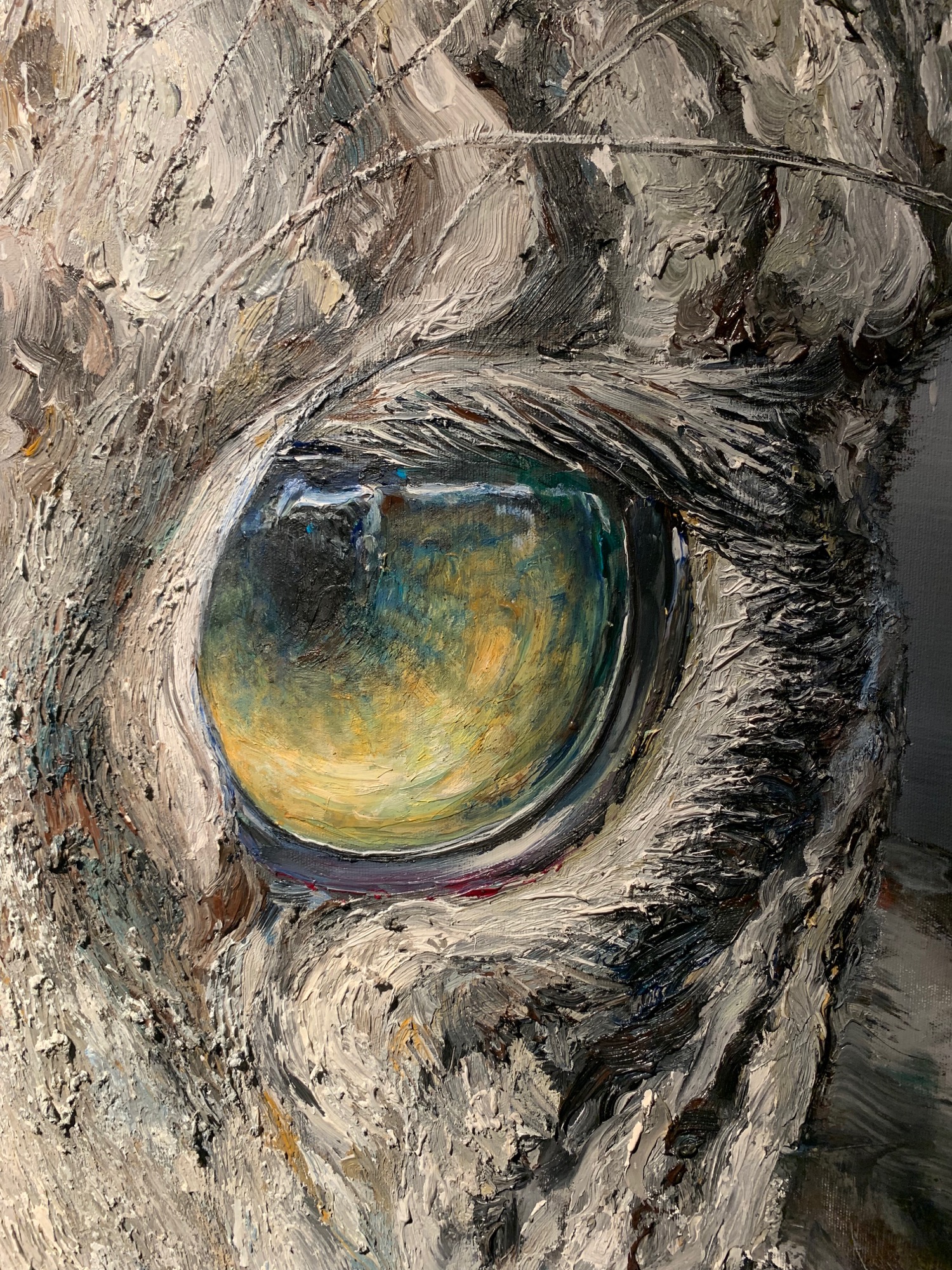 Una serie que nos adentra en los paisajes de la dehesa jienense y nos muestra los animales que la habitan, desde caballos, hasta linces, toros, ciervos y buitres, con todas su crudeza y con toda su belleza. Y con esos ojos tan expresivos siempre presentes en la obra de Miguel Scheroff