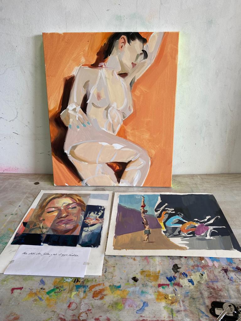 Irene has come to the residence thanks to the collaboration with galería Lumbreras and its project called «Joven llama a joven». Human figure and specially female figures are a core part of her artwork and the stay in the island has helped her stop after a very busy year and create