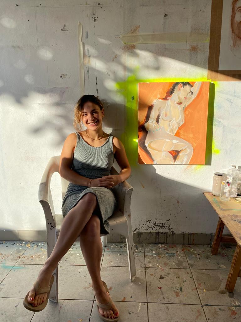 Irene ha venido a la residencia a través del programa de la Galería Lumbreras «Joven llama a joven». La figura humana y en especial la femenina son parte fundamental de su obra y la estancia en la isla le ha ayudado a parar tras un año intenso y crear.