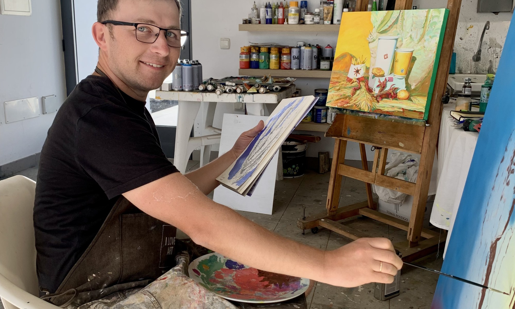 En tiempos tan convulsos, Victor Ponomarenko ha venido desde Rusia hasta Lanzarote. Todo aquí le ha sorprendido y ha empezado a trabajar con una nueva paleta de colores de tanta luz que percibía a su alrededor. Victor ha absorvido todo lo que la isla le ha dado y seguramente hay un antes y un después en su obra tras una experiencia tan intensa.