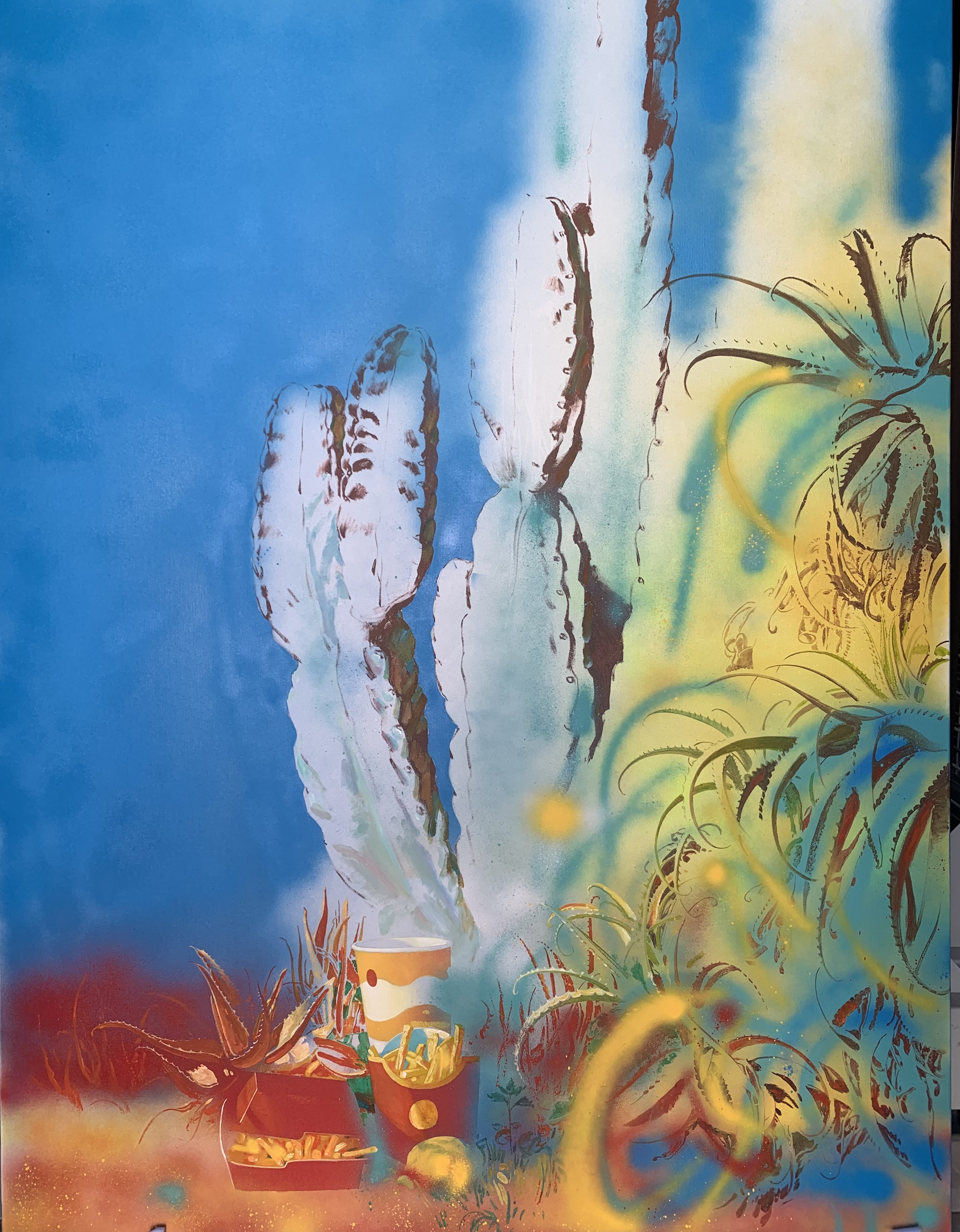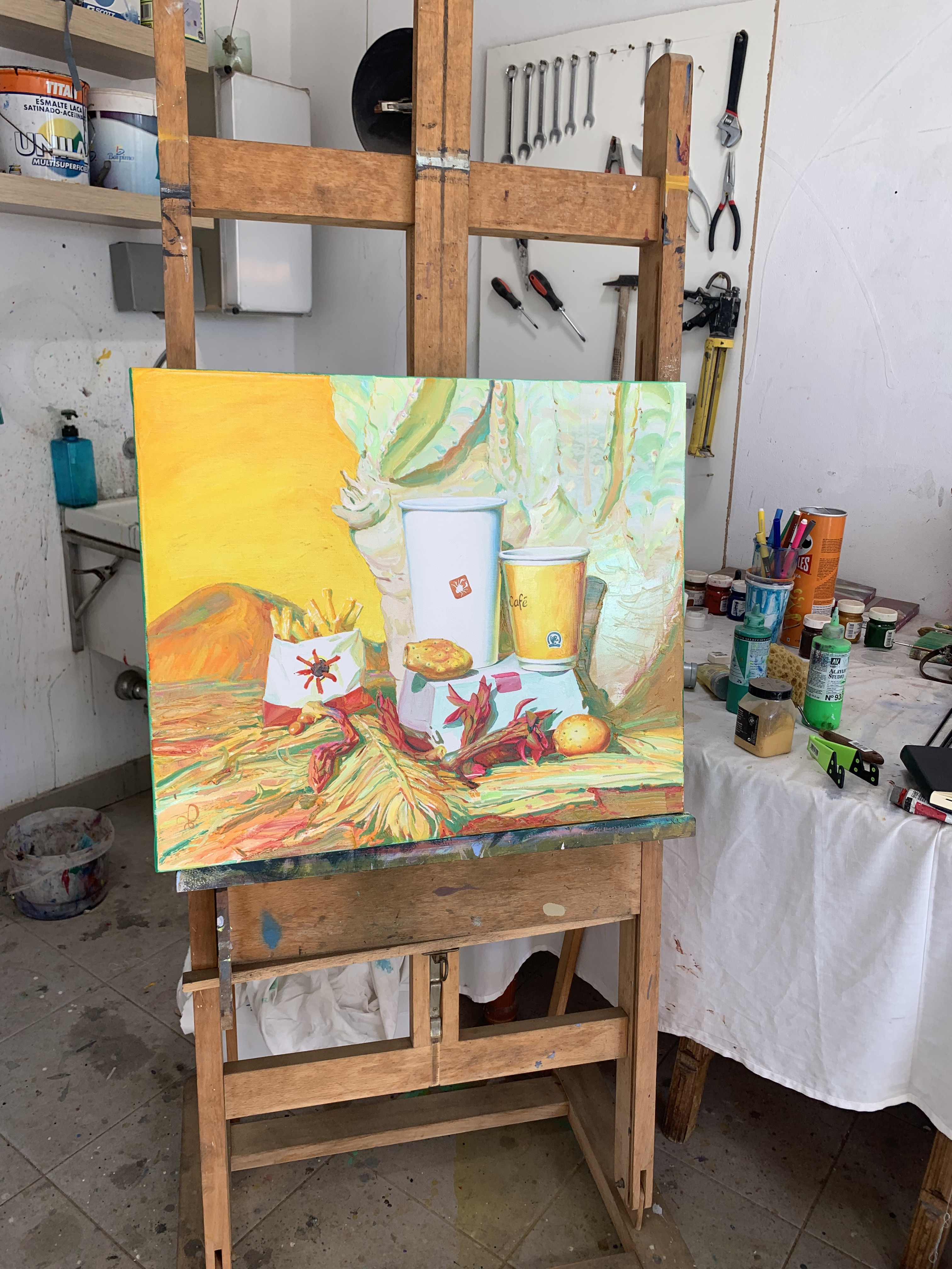 Victor has come to Lanzarote from Russia in very uncertain times. Everything here has surprised him and he has started working with a new color palette. Victor has absorbed everythig the island has given him and there’s most probably a before and after in his work after such an intense experience.