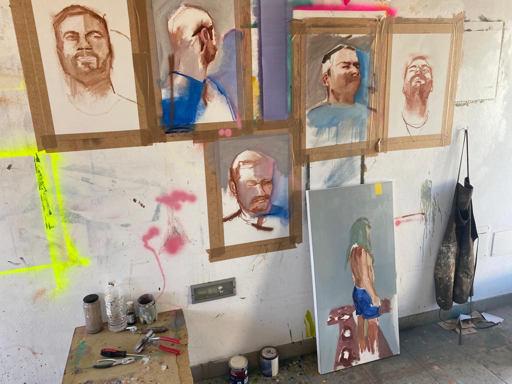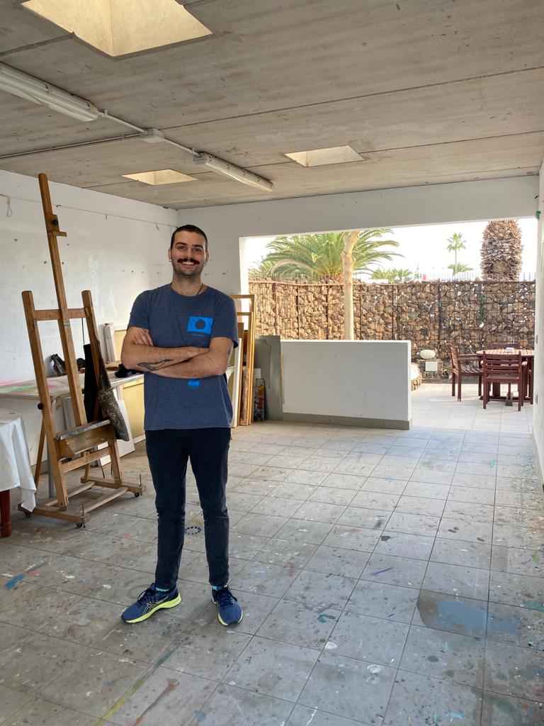Jon Amorrortu has also come thanks to the project «Joven llama a joven» from Galería Lumbreras and he has seized the opportunity to experiment and challenge himself. He changed from black and white to color and from figurative to abstract. Here, in Lanzarote, he has decided to experiment con human figure