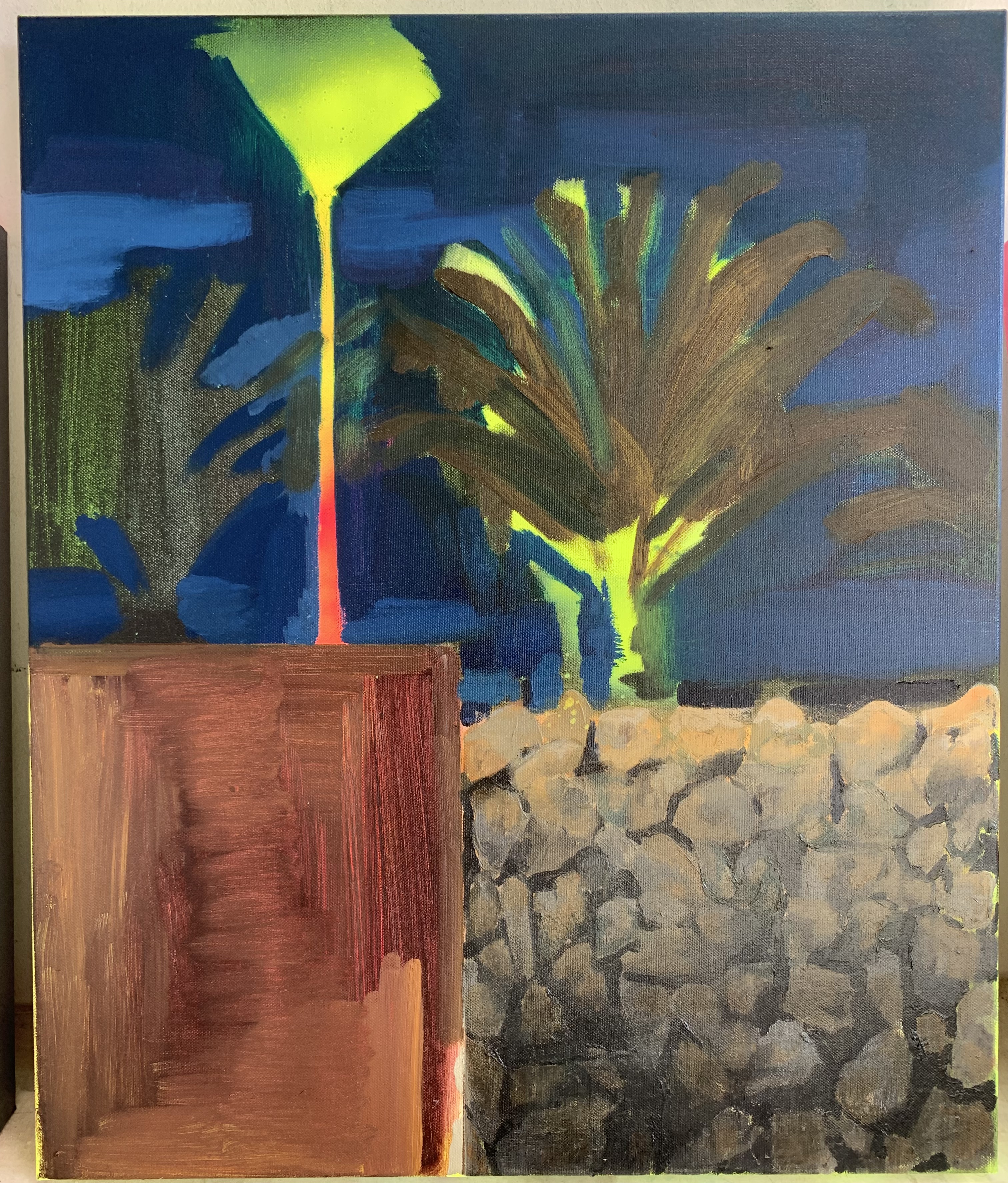 Jon Amorrortu también ha llegado a nosotros a través del proyecto «Joven llama a joven» de la Galería Lumbreras y ha aprovechado la estancia para retarse y experimentar. Pasó del blanco y negro al color y de lo figurativo se va acercando a la abstracción. Aquí en Lanzarote se ha animado a acercarse a la figura humana .