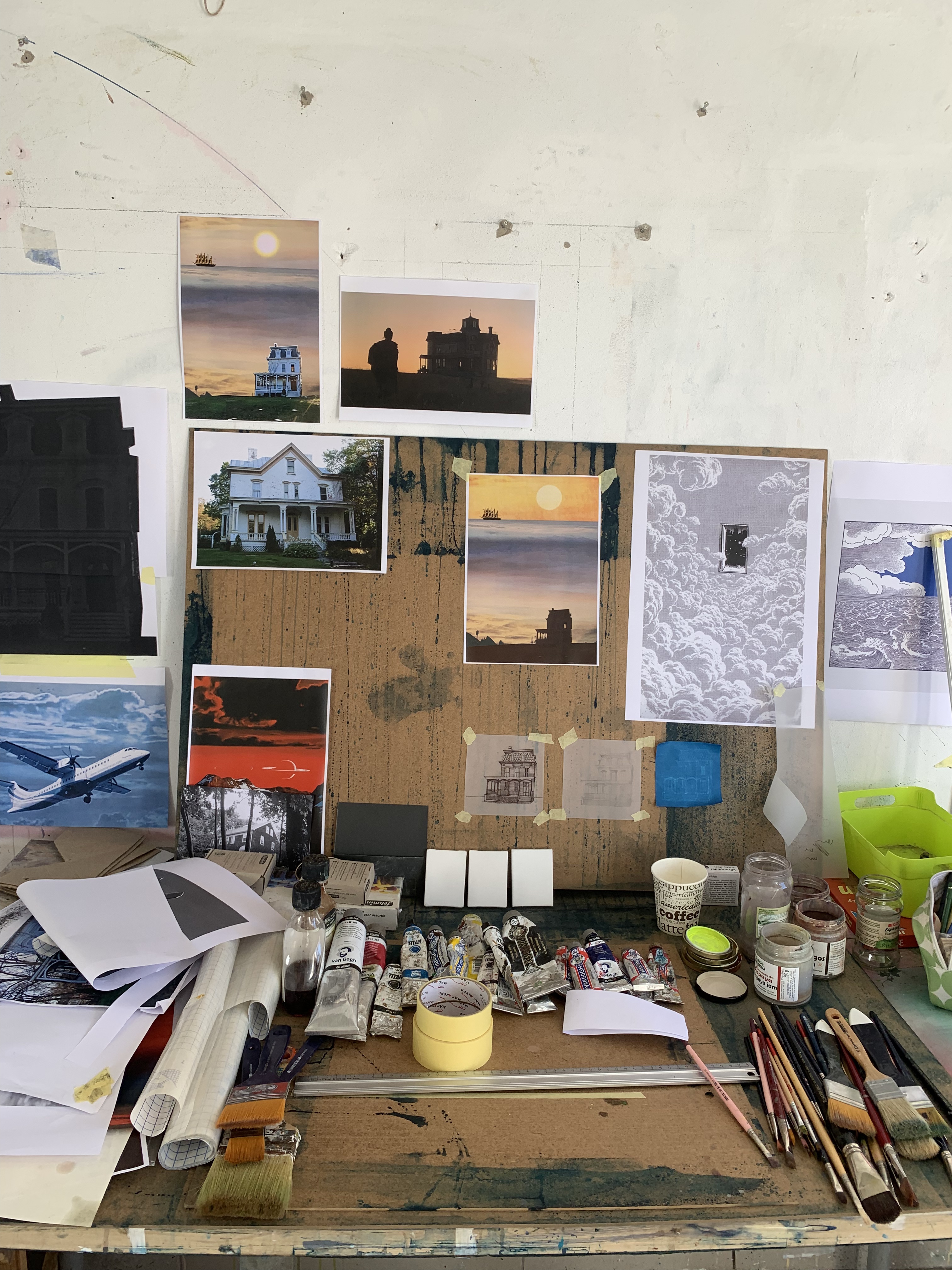 Artista metódica donde las haya, su obra nos traslada a novelas y películas marcadas por el misterio. Hay también una parte onírica y surrealista en su trabajo y un especial cuidado en el uso del color que ha dado lugar en esta ocasión a convertir en obra de arte también la paleta que ha utilizado durante la estancia en la residencia.