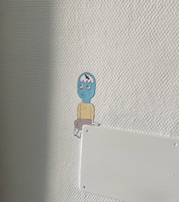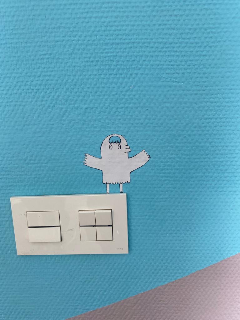 Juan had to take photos for his catalog with the Sorigué Foundation and took the opportunity to touch up his works while he spent a few days with us. The touch-ups brought us some surprises like some little characters who have lived in the apartment we have dedicated to Juan ever since.