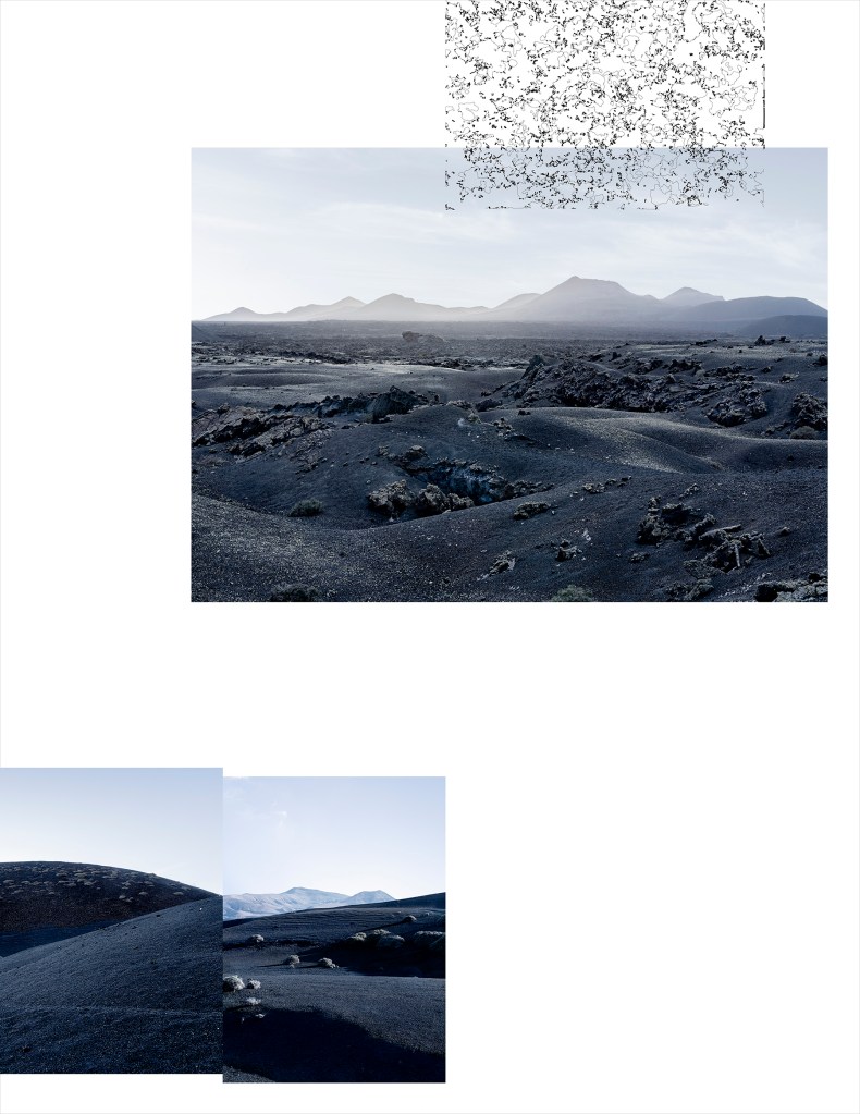 Antonio has developed his project in the Parque Nacional de Timanfaya and surroundings, taking pictures of a territory that varies according to the moment of the day and the weather. A unique territory that doesn’t leave anybody indifferent and which he has fully reflected in its perfection and absence of hierarchies in the milestones of its extension. A territory that he has also drawn, inspired in its material, rocks