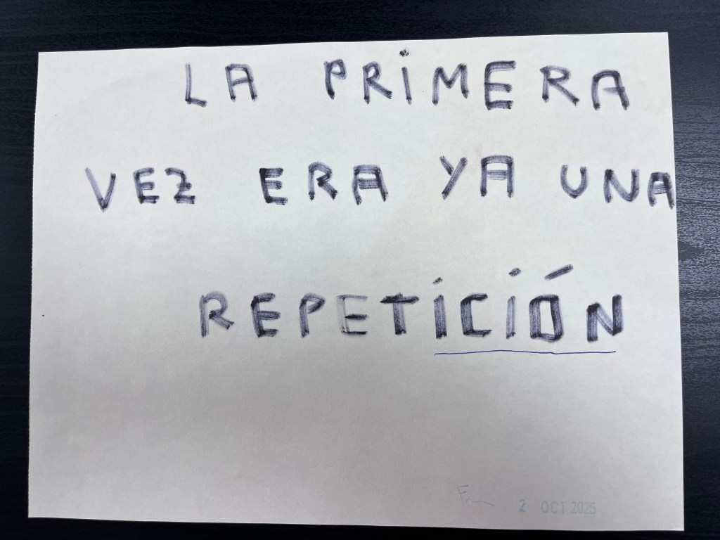 Fermín’s time at the residence has been brief but intense. He’s been experimenting, as he likes to do, and has been «touristing» public institutions, leaving his mark, of course, as these «traces» of their posters demonstrate.