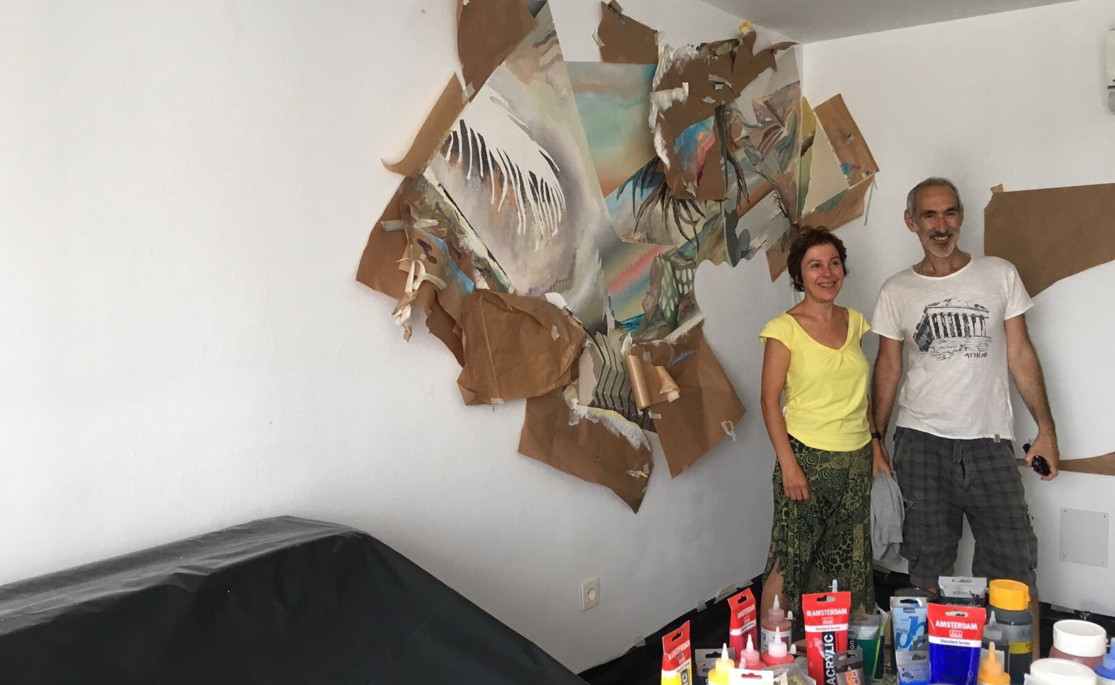 Sí, el 23 es uno de nuestros apartamentos. Ha sido el lienzo sobre el que han trabajado Luis y Ana, basándose en los paisajes y tópicos de Lanzarote pero dando rienda suelta a su imaginacion y creando una especie de mosaico en el que faltan piezas que el espectador ha de imaginar para poder completar …