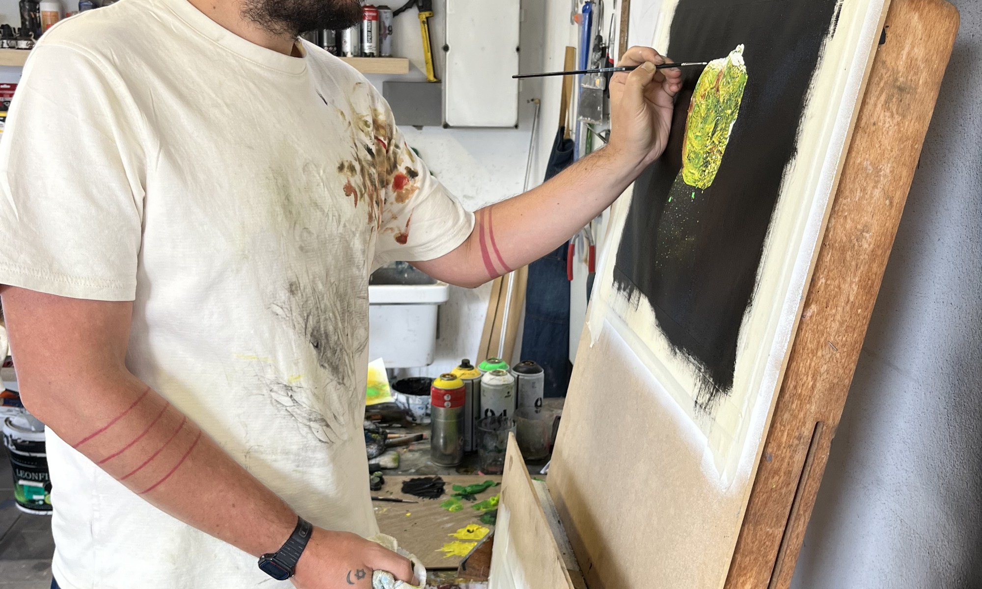 Dentro de la paleta de colores que utiliza Quique, hay uno que resalta sobre el resto: el negro. A través de ese color crea escenas nocturnas donde incide la luz en algo, ya sea una piedra preciosa, un satélite o un perro enfurecido.En su labor previa de investigación acerca de Lanzarote, Quique descubrió la leyenda …