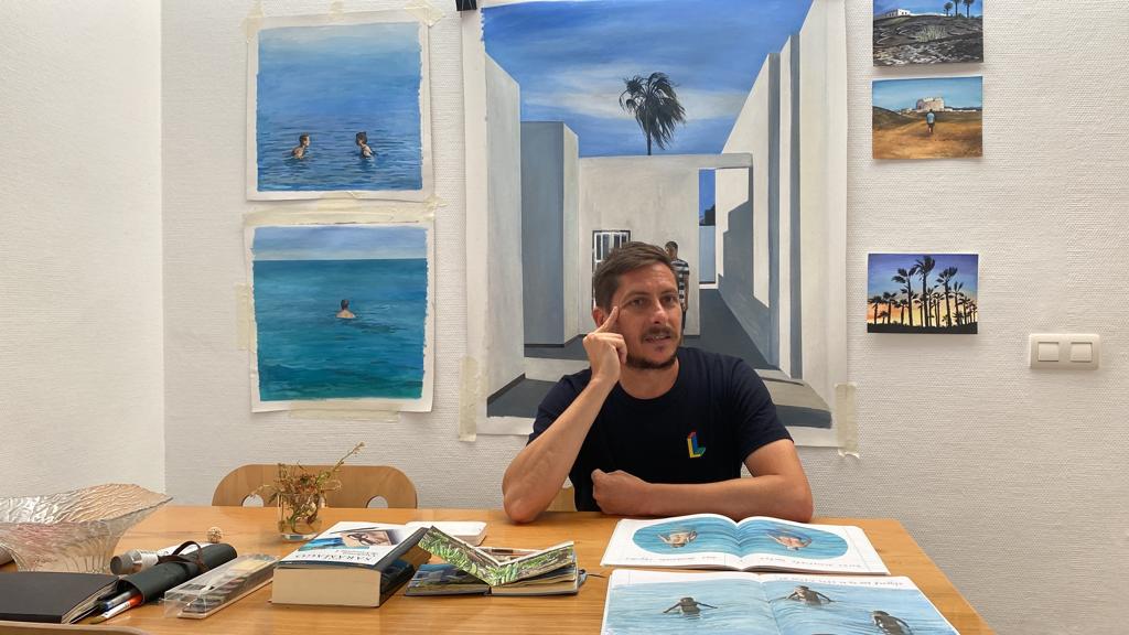Federico siempre viaja con su cuaderno y acuarelas y sale a pintar aquello que le llama la atención. En esta ocasión, además de recorrer la isla y pintar sus volcanes, sus costas, su naturaleza, ha visitado pueblos y ha pintado plazas, rincones o lugares únicos como los Jameos del Agua, el Jardín de Cactus, LagOmar, …